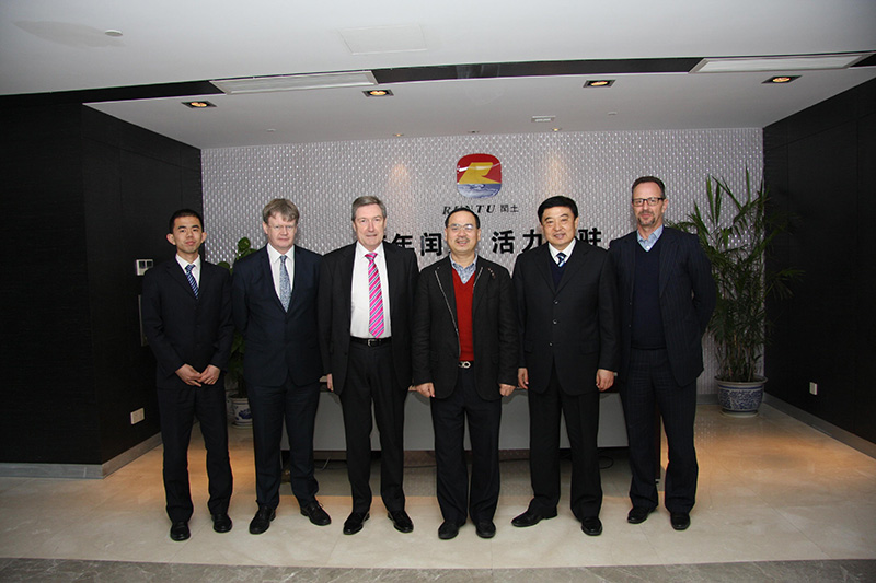 12月10日,英國(guó)染色家協(xié)會(huì)主席Richard Willey Straughan(左三)、英國(guó)染色家協(xié)會(huì)秘書(shū)長(zhǎng)Graham Maurice Clayton(左二)、中國(guó)染料工業(yè)協(xié)會(huì)副理事長(zhǎng)兼秘書(shū)長(zhǎng)田利民(右二)等一行到公司考察并舉行了中國(guó)染顏料企業(yè)與英國(guó)染色家協(xié)會(huì)交流會(huì)。在公司考察期 間,阮加春總經(jīng)理(右三)和英國(guó)貴賓就雙方合作進(jìn)行了深入交流。