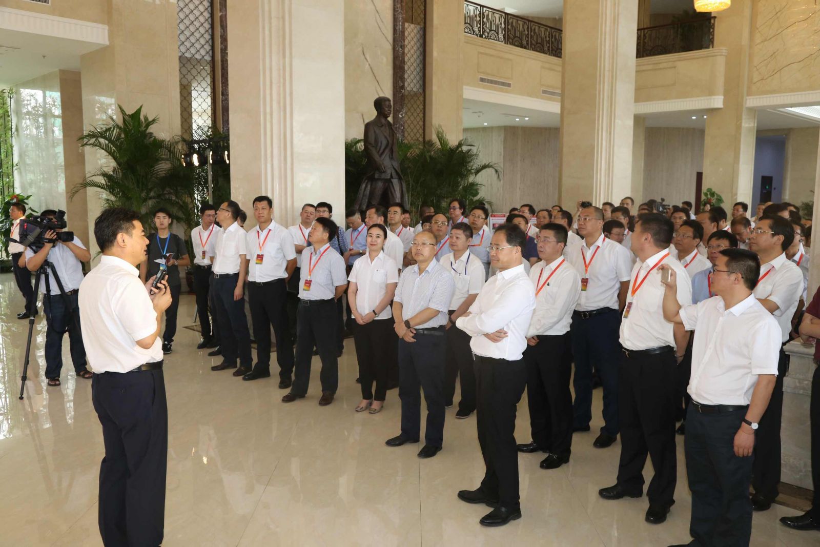 9月12日,全省傳統(tǒng)制造業(yè)改造提升工作推進(jìn)會(huì)在紹興召開,現(xiàn)場(chǎng)考察工作組來到浙江閏土股份有限公司生態(tài)工業(yè)園進(jìn)行考察,參觀閏土科技展覽館,了解化工產(chǎn)業(yè)循環(huán)化發(fā)展情況,區(qū)委書記陶關(guān)鋒作展板內(nèi)容介紹。來自省、市各級(jí)領(lǐng)導(dǎo),行業(yè)協(xié)會(huì),企業(yè),媒體代表共計(jì)320余人參加。閏土股份公司董事長(zhǎng)阮靜波、總經(jīng)理徐萬福、副總經(jīng)理徐軍等領(lǐng)導(dǎo)出席會(huì)議,閏土作為本次重點(diǎn)企業(yè)代表,全程參加。