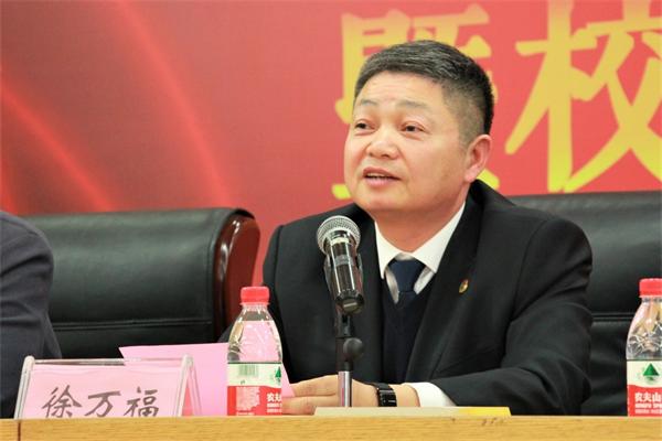 閏土股份公司總經(jīng)理徐萬(wàn)福致辭。他指出,中國(guó)經(jīng)濟(jì)已經(jīng)由高速增長(zhǎng)階段轉(zhuǎn)向高質(zhì)量發(fā)展階段,需要不斷增強(qiáng)經(jīng)濟(jì)創(chuàng)新力和競(jìng)爭(zhēng)力,而實(shí)現(xiàn)創(chuàng)新這一驅(qū)動(dòng)力,關(guān)鍵在于創(chuàng)新教育和創(chuàng)新人才。閏土股份公司經(jīng)過(guò)三十多年的砥礪前行,如今成為全球第二大染料生產(chǎn)供應(yīng)商、國(guó)內(nèi)染料行業(yè)龍頭企業(yè),正是重視企業(yè)人才培養(yǎng)與注重科研創(chuàng)新所取得的成績(jī)。目前,公司已與國(guó)內(nèi)多所知名高校建立合作關(guān)系,組建了閏土化工研究院研發(fā)平臺(tái),今年7月與北京化工大學(xué)簽訂戰(zhàn)略合作協(xié)議,更是開(kāi)啟了校企之間項(xiàng)目合作、科技創(chuàng)新、產(chǎn)研一體、人才培養(yǎng)的新篇章。徐萬(wàn)??偨?jīng)理表示,大學(xué)既是選賢舉能之地,又是培育英才之所,他鼓勵(lì)同學(xué)們?cè)?ldquo;求學(xué)”的同時(shí)要“修德”,并誠(chéng)邀大家到閏土參觀實(shí)習(xí)與就業(yè),充分施展個(gè)人才華。