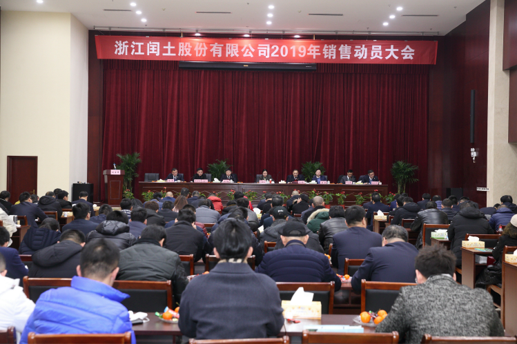 212日,閏土股份2019年銷售動員大會在閏土生態(tài)工業(yè)園隆重召開。阮靜波董事長攜公司高層領(lǐng)導(dǎo)出席會議。本次大會旨在對公司2018年的營銷工作進行了全面總結(jié),提出了2019年新的銷量目標(biāo),號召全體銷售工作人員勵精圖治、不斷進取奮斗,全面提升銷售團隊的戰(zhàn)斗力。