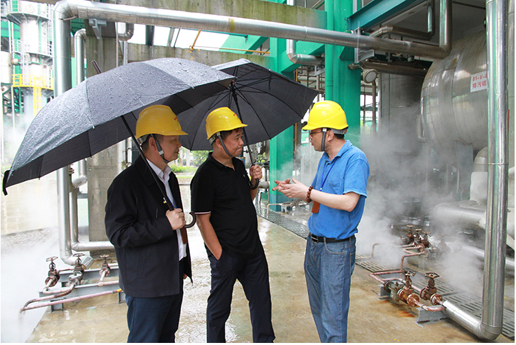 6月20日下午,浙江省生態(tài)環(huán)境廳排污權交易中心主任蔡文祥調研閏土生態(tài)工業(yè)園,股份公司總經理徐萬福陪同。