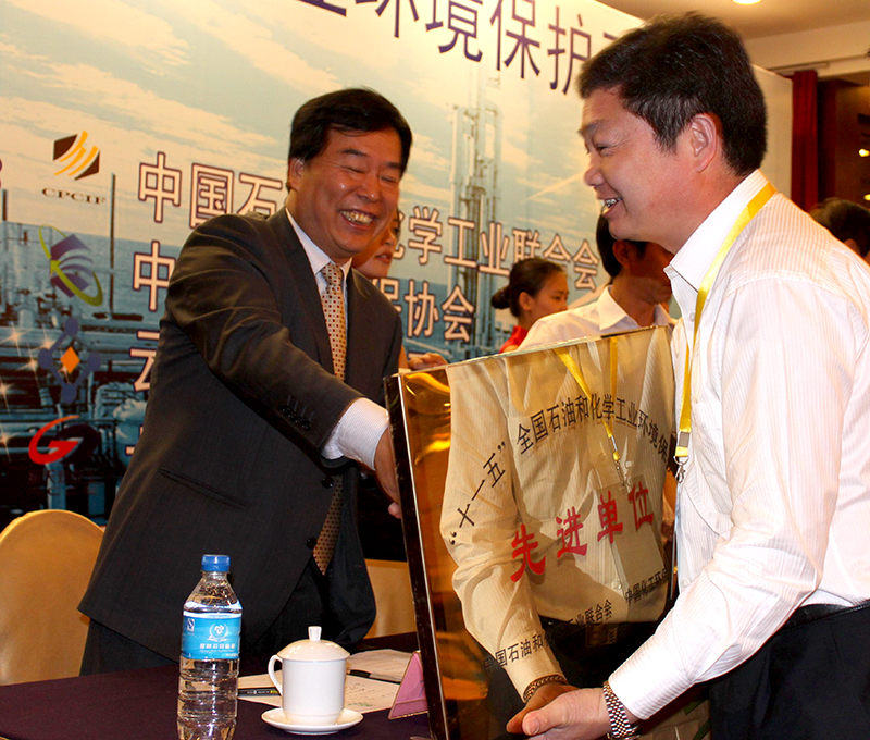 5月30日,全國(guó)石油和化學(xué)工業(yè)環(huán)境保護(hù)工作會(huì)議在昆明舉行,公司常務(wù)副總徐萬(wàn)福(右)代表公司參加了本次會(huì)議并領(lǐng)取了獎(jiǎng)牌。繼4月份被國(guó)家安全生產(chǎn)監(jiān)督管理總局授予“全國(guó)安全文化建設(shè)示范企業(yè)”,這次公司又被中國(guó)石油和化學(xué)工業(yè)聯(lián)合會(huì)和中國(guó)化工環(huán)保協(xié)會(huì)聯(lián)合授予“十一五”全國(guó)石油和化學(xué)工業(yè)環(huán)境保護(hù)先進(jìn)單位。
